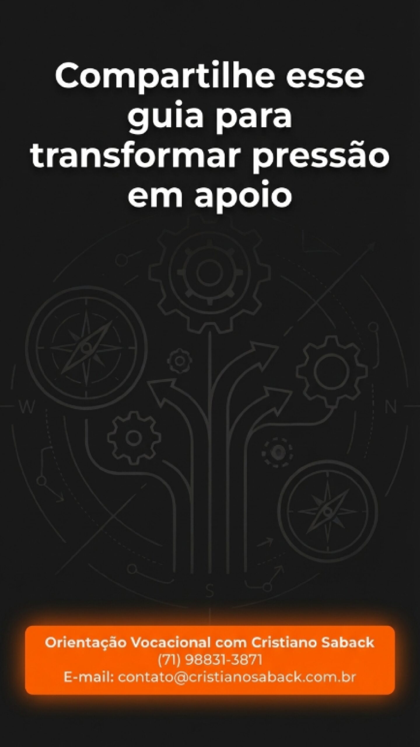 Cristiano Saback é um entusiasta de pessoas. Atua como consultor de carreira, orientador vocacional e palestrante há mais de 20 anos. Atende clientes que buscam desenvolvimento profissional e motivação para resultados. Formado em comunicação, é também pós-graduado em psicologia analítica, em psicopedagoia e em potenciais da imagem. Além das suas formações em assessment e em análise comportamental. Apresentou o programa Carreira & Sucesso na Educadora FM (2015-2020), atualmente é colunista do iBahia e escreve a coluna Gestão e Carreira, diretor do Instituto Inteligência Interpessoal e dá palestras e treinamentos para pequenas, médias e grande empresas. Entre seus maiores clientes: Natura, Claro, OAB, Embasa, Sheraton, etc. Como consultor de carreira atende profissionais das mais diversas áreas como: medicina, jornalismo, artistas, engenharia, políticos, enfermagem, área comercial, gestores, apresentadores(as), advogados, empresários(as), etc. Toda a sua experiência, com empresas e profissionais, cria uma bagagem de informações importantes, que ajudam muito no trabalho de mentoria de carreira e orientação vocacional.